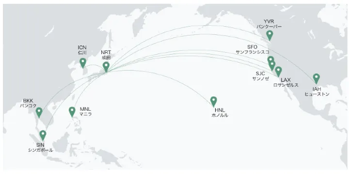 北米とアジア主要都市へ、ますます広がる路線ネットワーク。成田空港を拠点に、あなたの旅の可能性を拡げます。ビジネスにも観光にも、最適なルートで快適な空の旅をお届け。