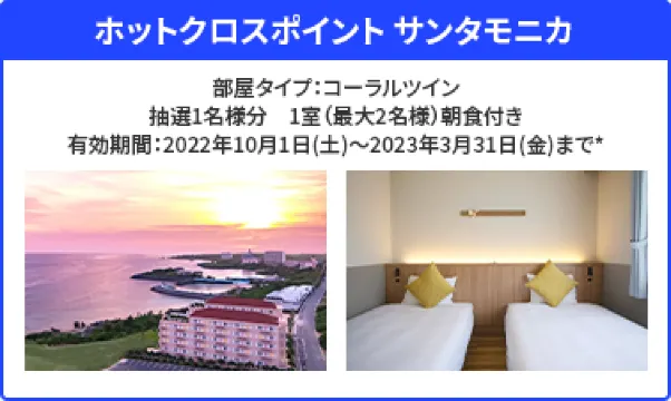 景品宿泊券対象期間:ホテルによって利用可能期間が異なります。当選後、別途ご案内致します。
