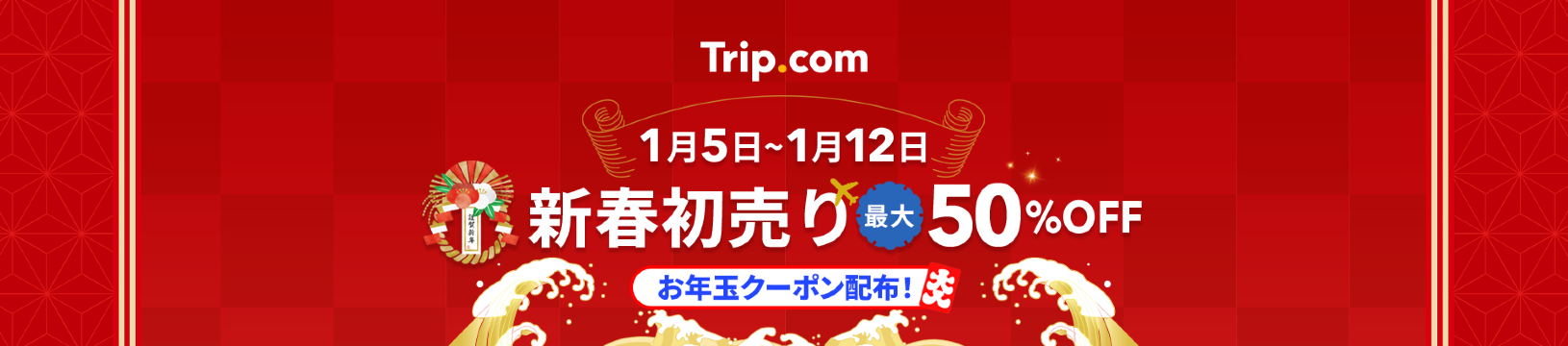 1. 予約期間:2026年1月5日(月)00:00から~2026年1月12日(月)23:59まで(日本時間)2. キャンペーン対象:Trip.comのアプリ、ウェブサイト(デスクトップ、モバイル)でのご予約3.フラッシュセールは全て購入完了の先着順で在庫が確定します。お支払い画面に遷移しても在庫が確保されるわけではございません。なお、通信環境やアクセス集中の影響により、決済完了前に在庫切れとなる場合や、在庫情報の表示にタイムラグが生じることがあります。 4. 罫線の入った価格は参考価格です。これらの価格は、小売価格、市場価格、サプライヤーが推奨する価格、または特定の商品や以前の販売価格に基づいて表示されていた価格で、元の販売価格を表すものではありません。参考価格はページ作成時点のものであり、空室状況等各種影響により変わることがあります。5. キャンペーンへの参加に使用したアカウントにセキュリティ上のリスクや不正があることが判明した場合、Trip.com はそのアカウントに利用制限を設ける場合がございます。当該制限には、キャンペーンへの参加制限や予約制限が含まれますが、これらに限定されるものではありません。6. キャンペーンページ記載の価格は、ページ作成時点のものです。既に売り切れとなっていたり、価格が変更となっている場合があります。最終価格は予約ページをご確認ください。7. キャンペーンによる予約については、変更・キャンセル条件に通常より制限がある場合があります。詳細については、確定した予約のご利用条件をご参照ください。8. 予約は、Trip.comのアプリまたはウェブサイトの「アカウント」にてご確認いただけます。9. Trip.comは、キャンペーンの実施に関する全ての最終解釈・判断権を有します。