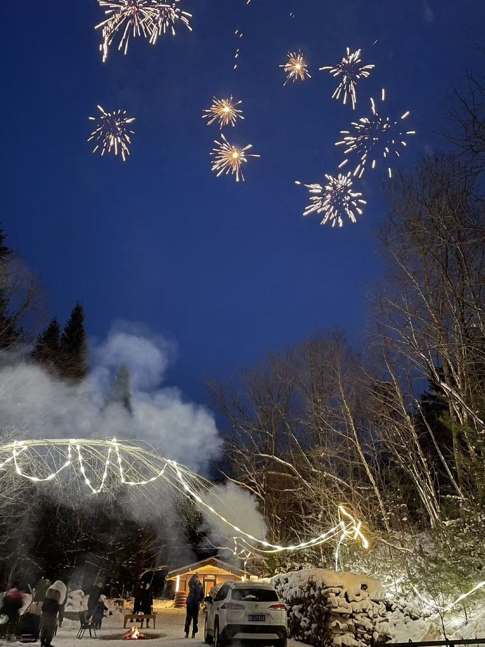 マイナス20度の童話のような雪の家や静かな森の中で、アツアツの鍋料理を楽しむ。