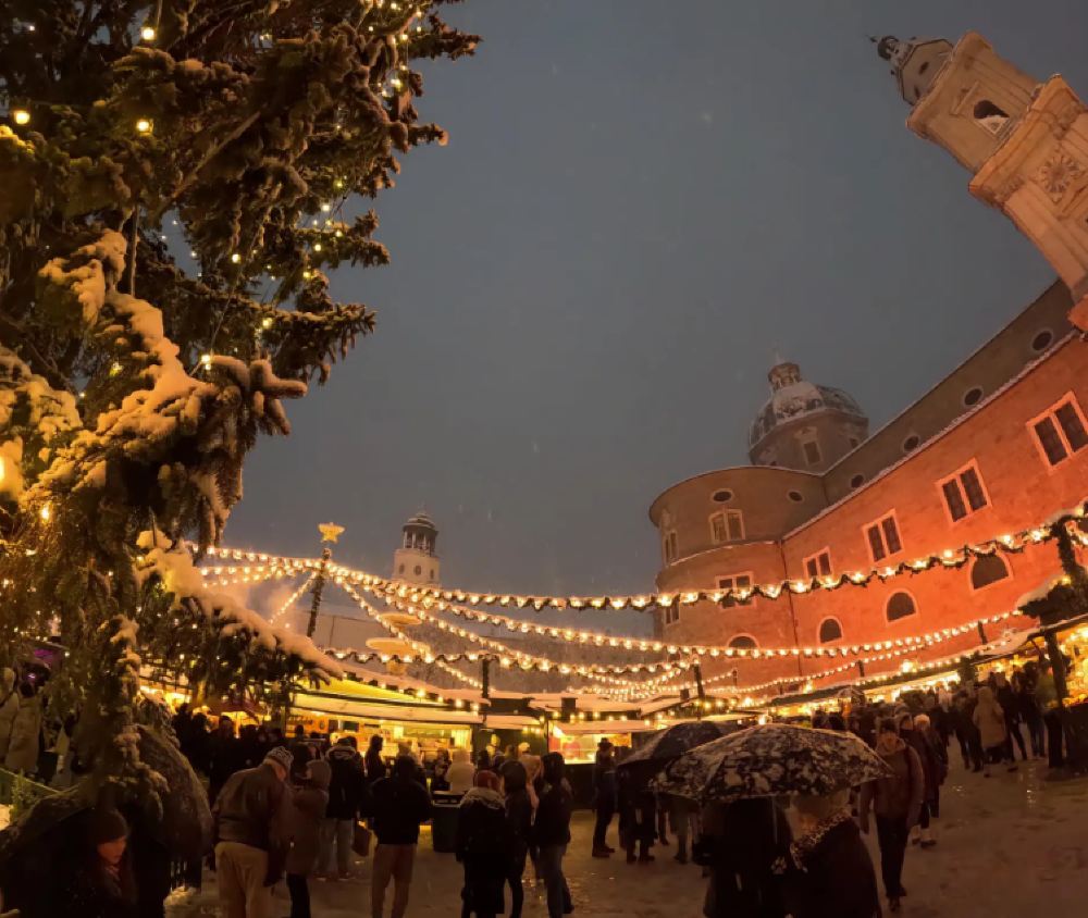 ザルツブルクでは、有名なザルツブルクのクリスマスマーケットを訪れる自由時間も設けられています。これはホリデーシーズンの魔法のようなハイライトです。旅行客は祝日の屋台の間を散策し、手作りの装飾品、ザルツブルク・ノッケルなどの地元の美味しい食べ物や温かいグリューワインを購入できます。マーケットは温かく魅力的な雰囲気を作り出し、家族や友人と一緒にホリデーミュージックを楽しみ、クリスマススピリットを感じるのに最適です。