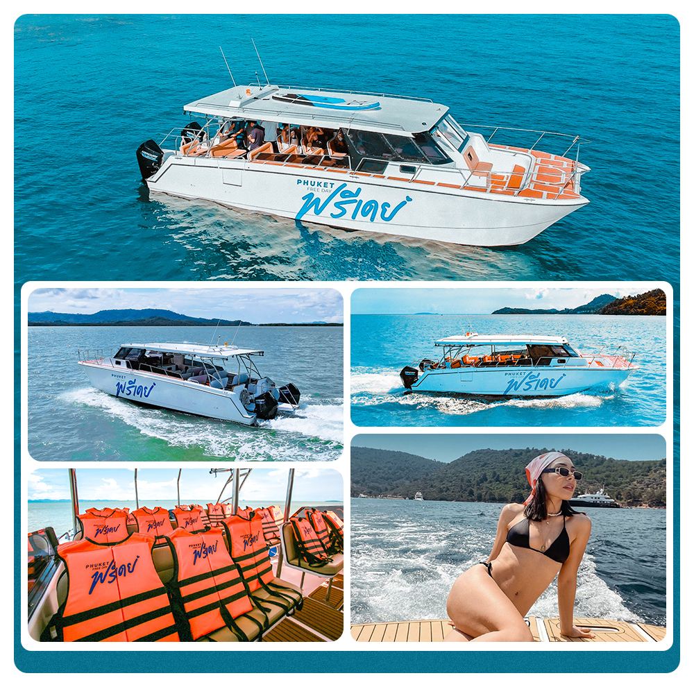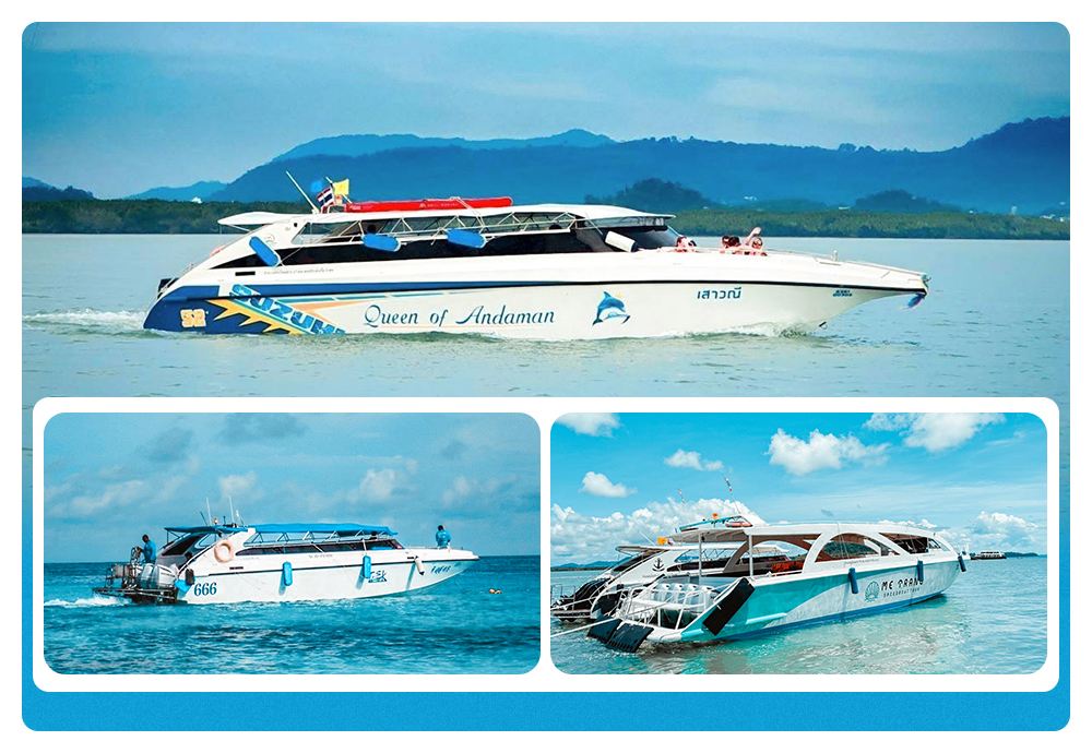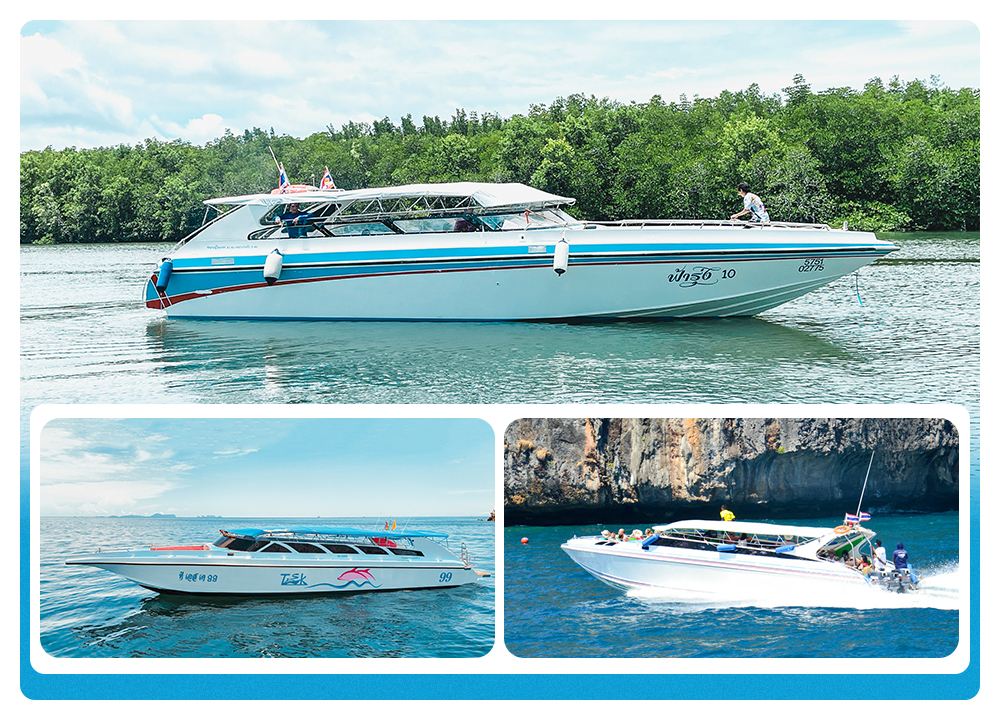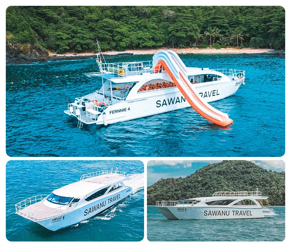 純白の外観+ツインエンジン、美しさ、速度、安定性を兼ね備え、島への到着時間を30分短縮。快適な横並びのソファシート、船内から360°の海景を楽しめる、船首のサンデッキで写真撮影が超人気。