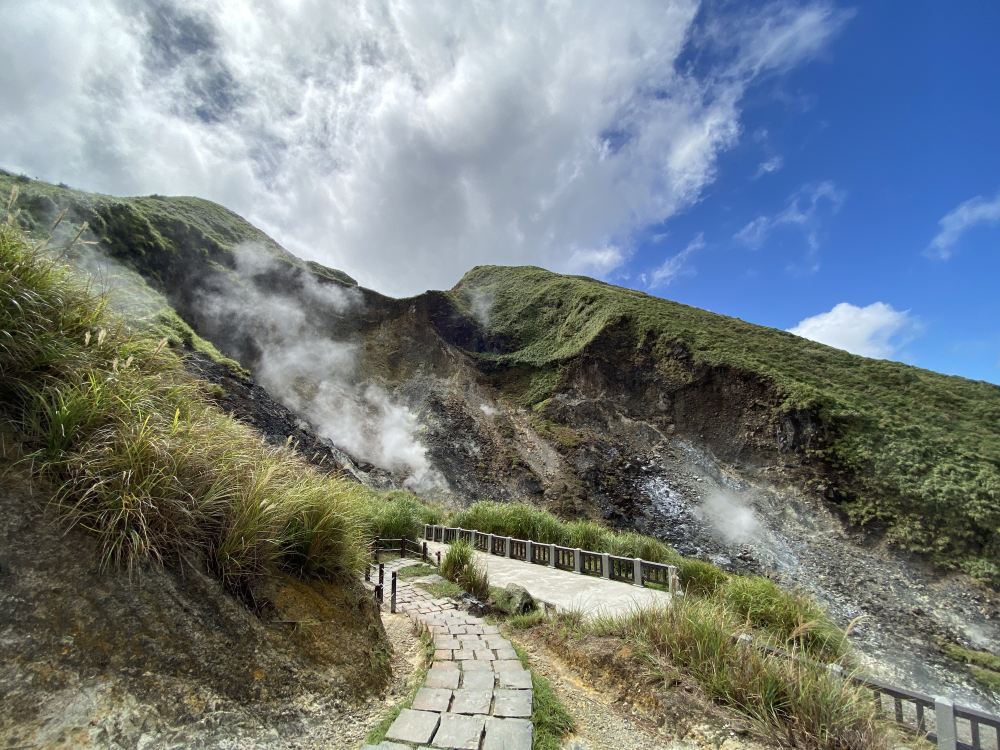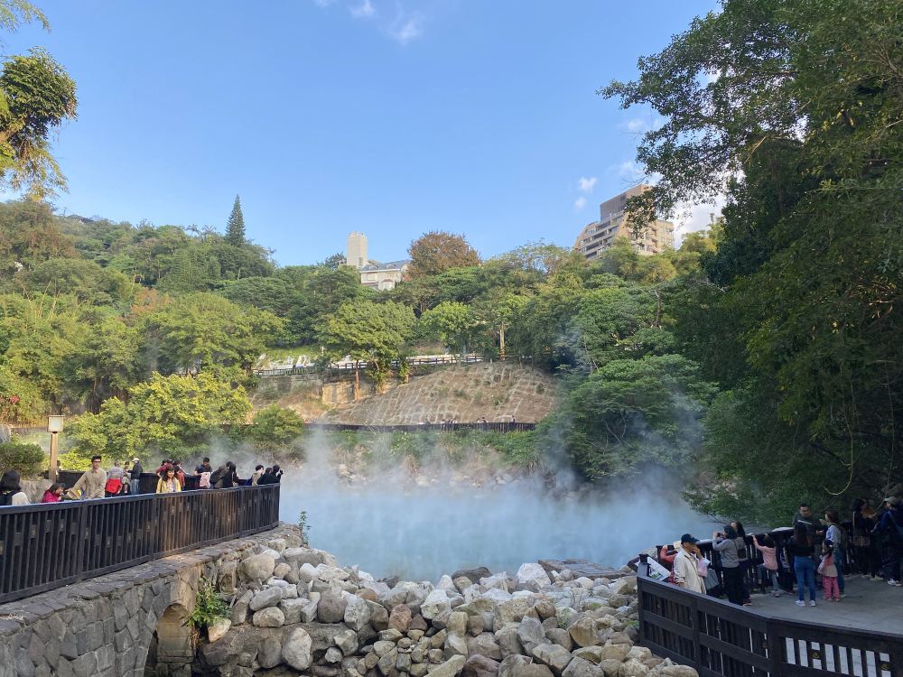 【北投地熱谷】この地域では、渓谷に沿って多数の噴気孔が点在しており、地熱活動の迫力を間近に感じることができます。
