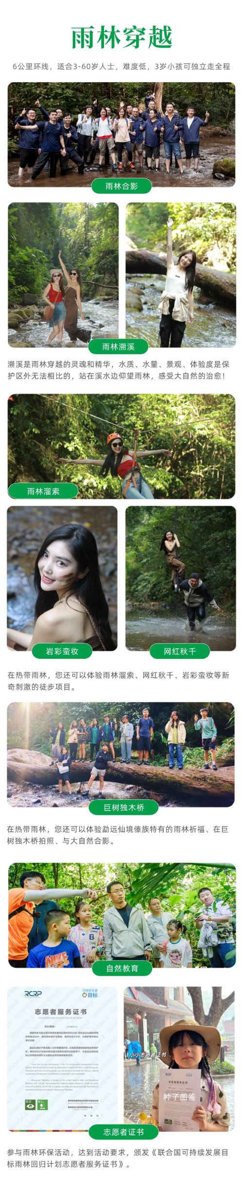 ガイドは国家自然保護区研学指導者資格を保有しており、子供たちに国連熱帯雨林回帰計画ボランティア証明書を授与します