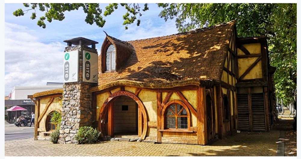 緑色の丸いドアと人工の木が屋根に生えた洞窟の家は、映画『ホビット』のビルボの家であり、指輪の仲間たちが旅を始めた場所でもあります。ツアーには袋小路通りにあるホビットの家の内部探索体験が含まれています。