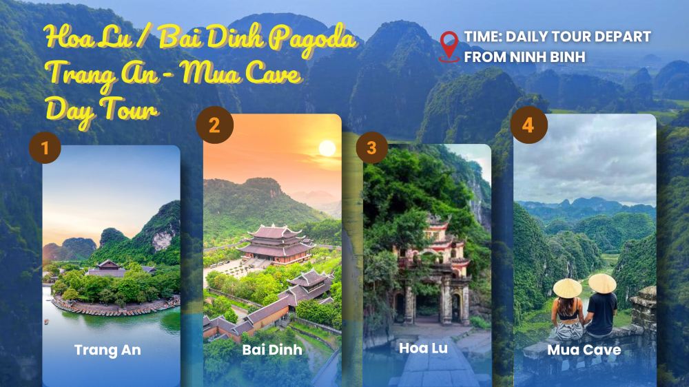 歴史とスピリチュアリティが融合するホアルーやバイディンを発見しましょう。4つの目的地を巡るツアーで両方を訪れ、ニンビンの魅力を存分に体験してください。