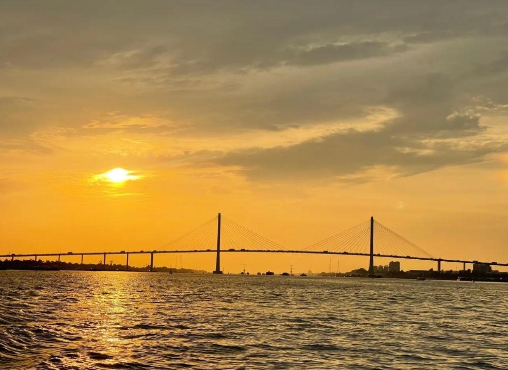 【渡船ボート】美しいメコン川を航行。川のいけすで魚を育てている様子や、養殖場で作業や休憩をしている様子もご覧いただけます。そして約20分でタイソン島に到着します。