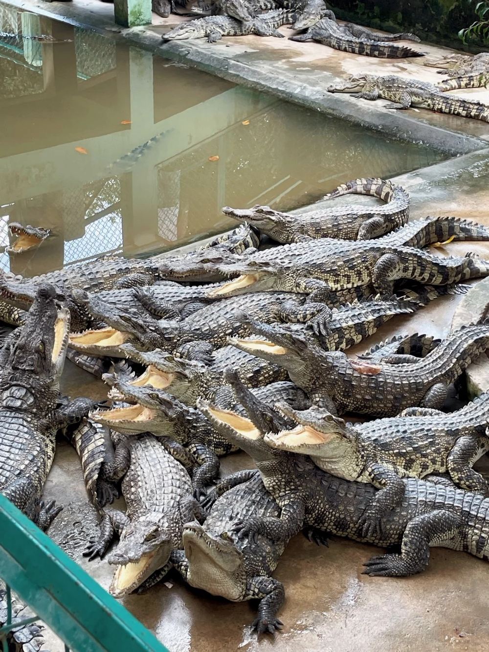 【ニシキヘビ/ワニを見る】黄金の蛇と触れ合うチャンス(蛇に触れたり、写真を撮ったりできます。費用は自己負担)があり、ワニ農場を訪れてワニに餌をあげることもできます(費用は自己負担)。