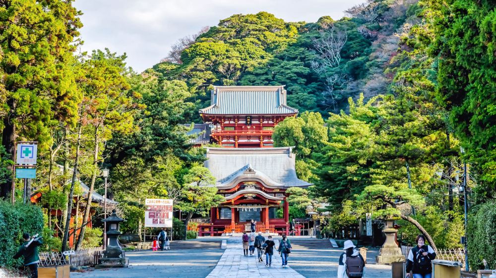 ▲ 【鶴岡八幡宮】 鎌倉を代表する神社の一つで、参道から鳥居の間を歩くと、静謐で厳かな雰囲気と歴史の息吹が調和した素晴らしい時間を感じられます。四季折々の風景が楽しめ、春の桜、秋の紅葉、夏の緑、冬の雪と、それぞれに風情があります。夏限定の花手水も見逃せませんよ~