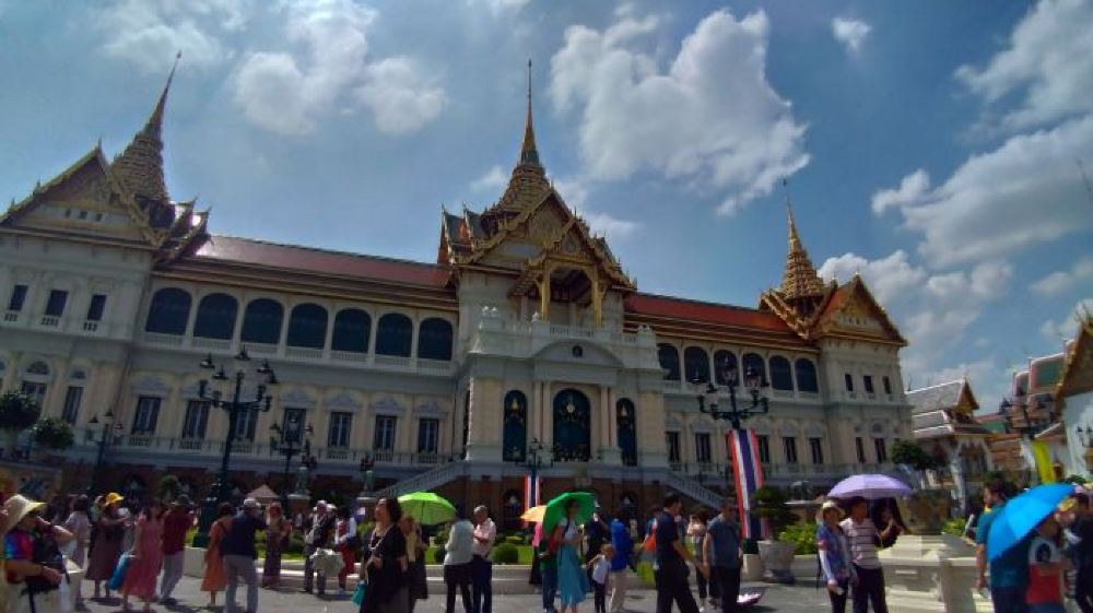 王宮は白壁に囲まれた20万㎡の敷地内にエメラルド寺院と隣り合って建てられています。王宮はタイ国内の数ある宮殿のなかでも最も権威のあるものです。