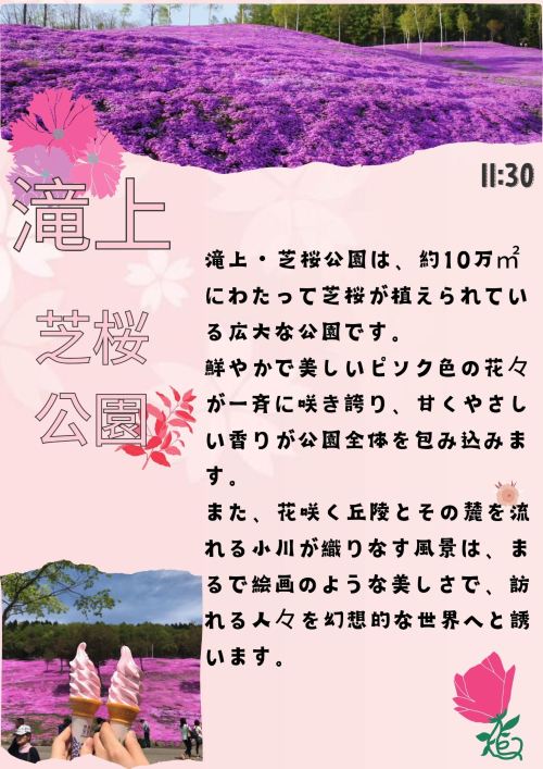 ② 日本有数の花の名所・滝上芝桜公園にて、約10万㎡に広がる芝桜が織りなす、魅惑のピンクの世界を満喫!