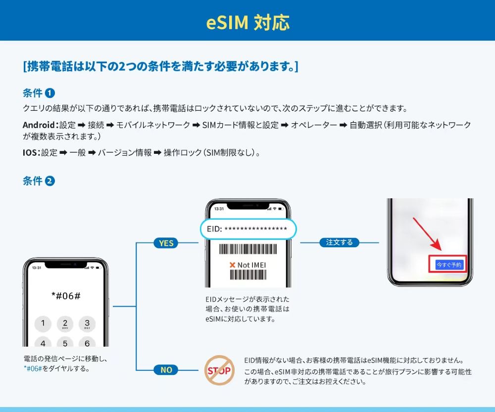 ※ご購入前に、上記の条件を満たしているか必ずご確認ください。両方の条件を満たしていない場合、eSIMは正常にご利用いただけません。