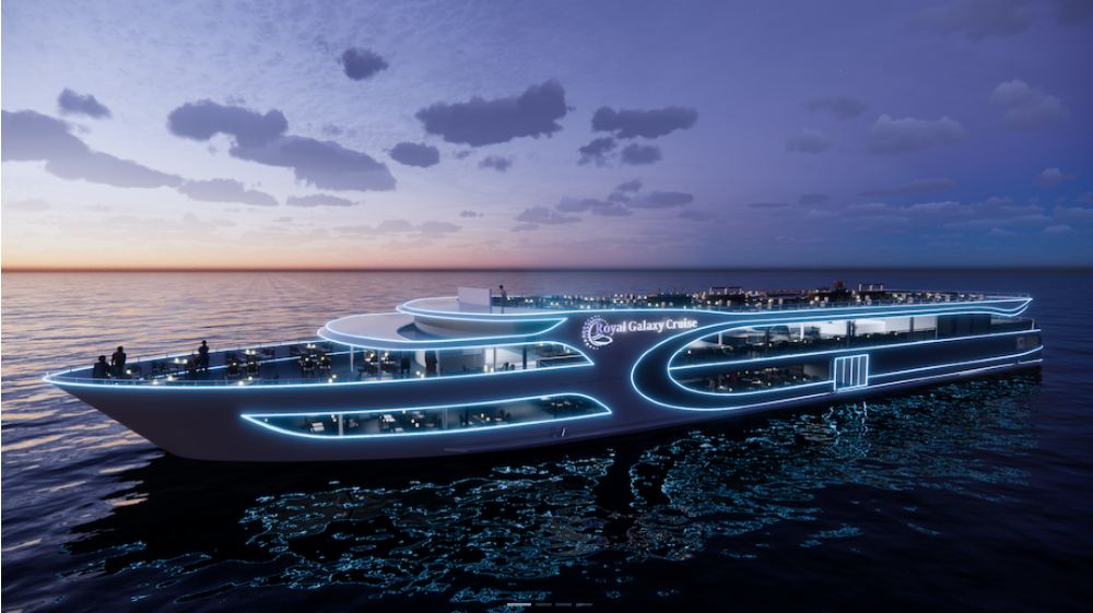ロイヤルギャラクシー号は、現在タイ市場でリリースされている最新、最大、そして最も豪華な大型クルーズ船です。1000人を収容可能で、著名なデザイナーによって2年の歳月をかけて設計・建造されました。同タイプのクルーズ船では初めてとなるダブルオープンスペースを採用しており、3階の屋外デッキエリアと2階の遮るもののないデッキエリアが設けられています。この設計によりオープンシート数が大幅に増加し、旅行客がチャオプラヤー川の夜景を楽しむニーズにより一層応えられるようになりました。3階デッキエリアは350人、2階の無遮断デッキエリアは280人、船首の屋外デッキエリアは120人、1階のエアコンエリアは250人を収容できます。