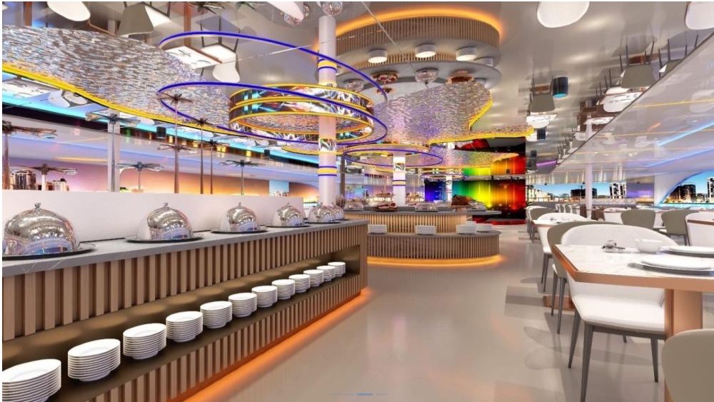 クルーズ船は最高級の装飾材料を使用し、より快適で豪華な乗船体験を提供しています。アメリカのJBLブランドのトップクラスオーディオシステムを採用し、華やかなステージライティングデザインと相まって、毎日異なるスタイルの歌手やダンサーによるパフォーマンスが行われ、ゲストはまるでコンサート会場にいるかのように、心ゆくまで視覚と聴覚の饗宴を楽しむことができます。