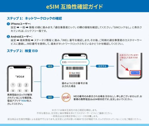 * 購入前に上記の条件を満たしているか確認してください。すべての条件を満たす場合にのみ、eSIMを正常に使用できます。