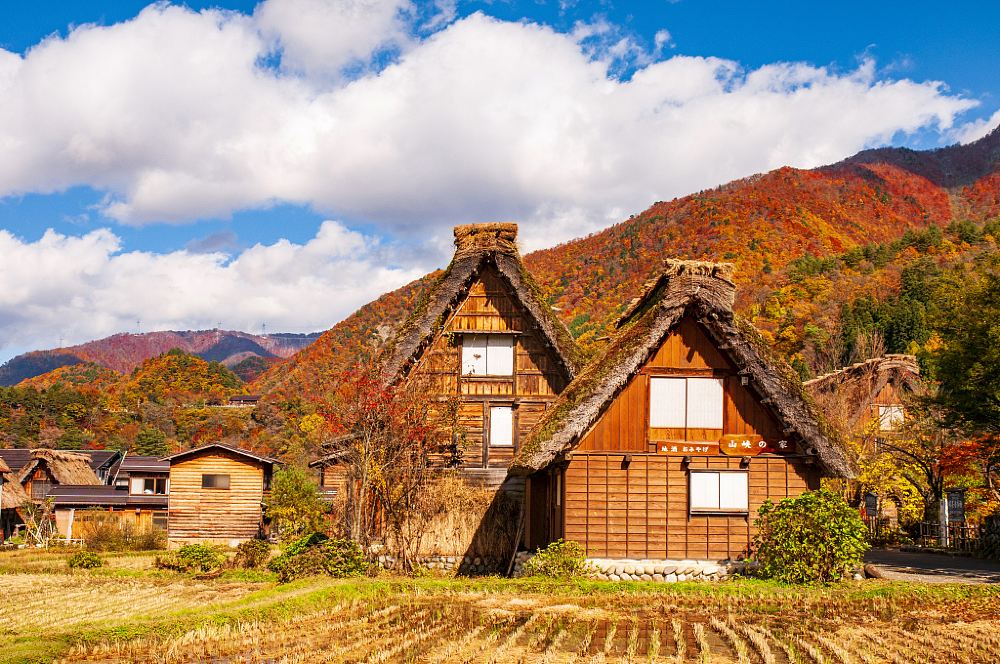 白川郷扇町集落は、世界遺産に登録されている三集落(白川郷、相倉、五箇山菅沼)の中で最も世帯数が多い集落で、152世帯となっています。霊宝白山から流れ出る大白川が庄川と合流し、白濁するのが白川郷の地名の由来です。