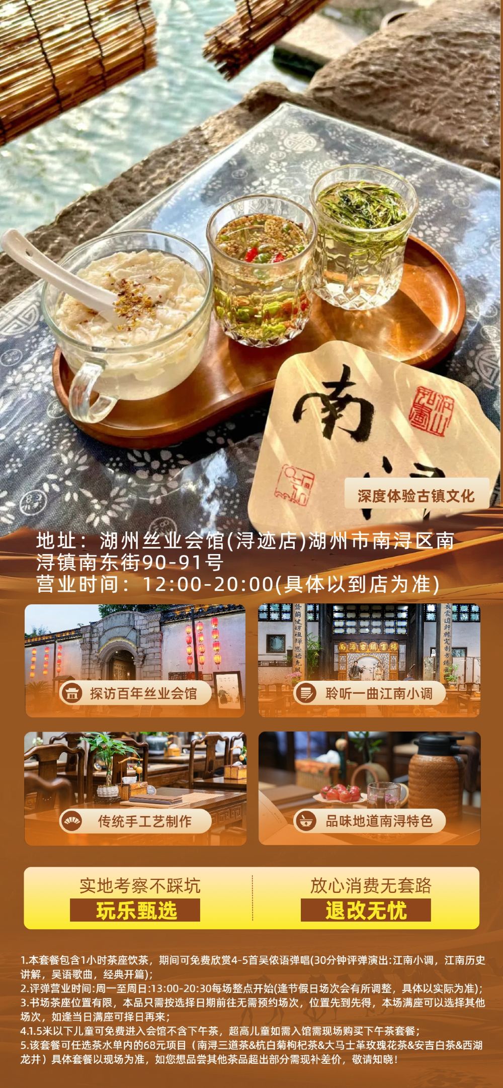 1. このツアーには1時間のお茶飲みが含まれており、その間に4〜5の呉農語の歌と演奏を無料で楽しむことができます(30分の平潭のパフォーマンス:江南の曲、江南の歴史の説明、呉語の歌、古典的なオープニング、男性と女性女性デュエット、309元相当)
