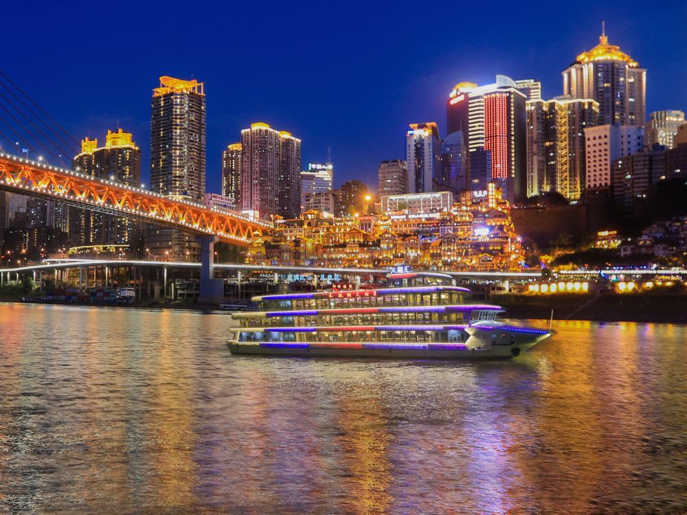 重慶両江ナイトツアー夜景遊覧船:洪崖洞/朝天門埠頭から選択可能|両江四岸の夜景