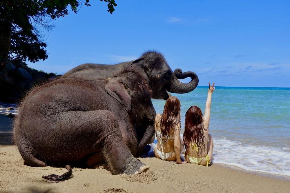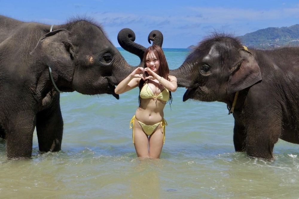 ▲ かわいい象と一緒に泳いだり、水遊びをしたり、写真を撮ったりできます。