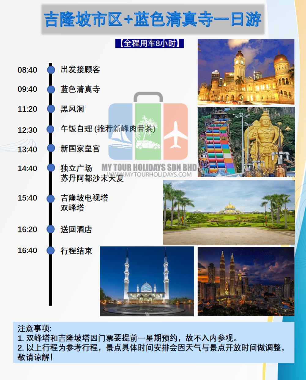 クアラルンプールワンデーツアーの行程計画