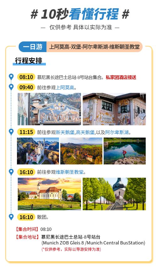 英/中文 ドイツ ノイシュヴァンシュタイン城+オーバーアマーガウ+リンダーホーフ城/ヴィース教会 ワンデーツアー