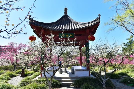 ▲ 【梅園】は無錫の西郊、浒山の南斜面に位置し、元は中国民族工業の「筆頭」であった栄宗敬・栄徳生兄弟が1912年に建てた私邸の庭園でした。毎年2月から3月にかけて、観光エリア内の数千本の梅の花が一斉に咲き誇り、山野を埋め尽くす花の海は数多くのカメラマンを引き寄せます。無錫には「春は梅園から始まる」という古い言い伝えがあります。 梅園の観光は季節性が高いため、春に訪れるのがおすすめです。早春の梅には赤、白、ピンクの花があり、一重咲きや八重咲きなど品種も多様で、同じ木に異なる色の花を咲かせるものもあります。珍しい淡緑色の梅も見られ、週末には特に多くの旅行者が梅見に訪れるため、可能であれば平日の来園が良いでしょう。梅の開花時期より少し遅れて、3月下旬から4月にかけてはチューリップが咲き誇り、観光エリアではチューリップ花祭りが開催されます。