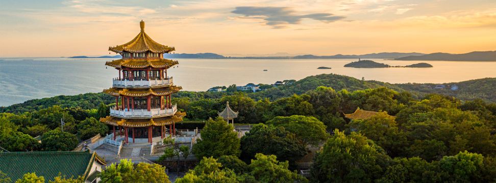 ▲ 【黿頭渚】は太湖北部にある半島で、その形が浮かぶ黿が首を上げているように見えることからこの名が付けられました。ここでは広大な庭園群を散策したり、船に乗って太湖の広大な景色を楽しんだり、太湖仙島に登って秘境を探検したりすることができます。また、春には桜を鑑賞し、「太湖の絶景、やはり黿頭渚」という趣を味わうこともできます。 毎年春に桜が一斉に咲き誇る光景はここならではの見事な景観で、にぎやかな桜祭りも開催されます。