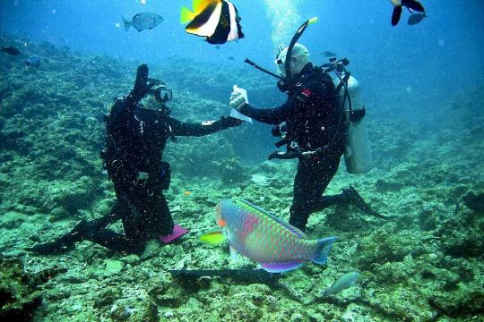 午前または午後の選択が可能です。体験中はPADI認定のマスターダイバーが器材の使い方やスキューバダイビングについて必要なことをすべて教えてくれるので、初心者でも安心です。まずはスキューバダイビングのビデオ講習から始まり、その後より詳しい講義とプレゼンテーションが行われ、さまざまなメディアを使って指導が行われます。ただし、すぐにダイビングするわけではありません!浅瀬から始めて、スキルを練習できるようになっています。