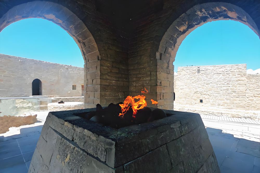 アゼルバイジャン・バクーの泥火山+火の神殿+モスク+壁画ワンデーツアー【1人から催行】