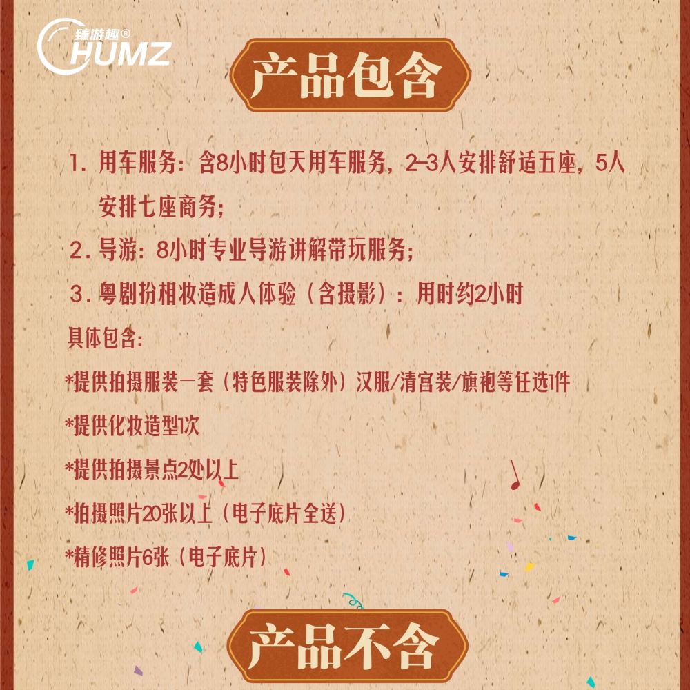 嶺南文化の魅力を没入型で体感できるツアーです。専門の講師が指導する広東オペラの衣装着付けとメイクアップで、劇中の人物に変身。西関歴史地区を散策し、伝統的な騎楼や西関大屋の間に漂う嶺南の趣を感じましょう。専用車と専属ガイドによるワンストップサービスで、少人数制のツアー設計により広州の無形文化遺産を深く体験できます。文化愛好家も家族連れも楽しめる一日行程で、千年の広州文化の雅を堪能し、真の文化的「主役」になりきってください。
