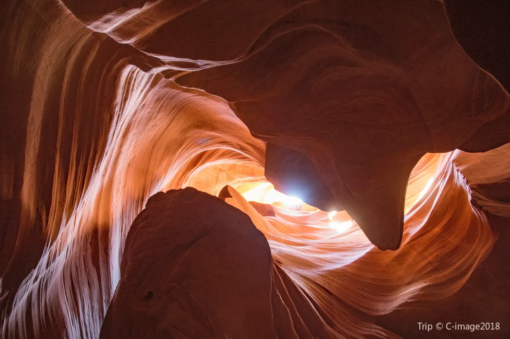 • 光と影の共演:アンテロープ・キャニオンの最も魅力的な特徴の1つは、光と影の織りなす美しいコントラストです。