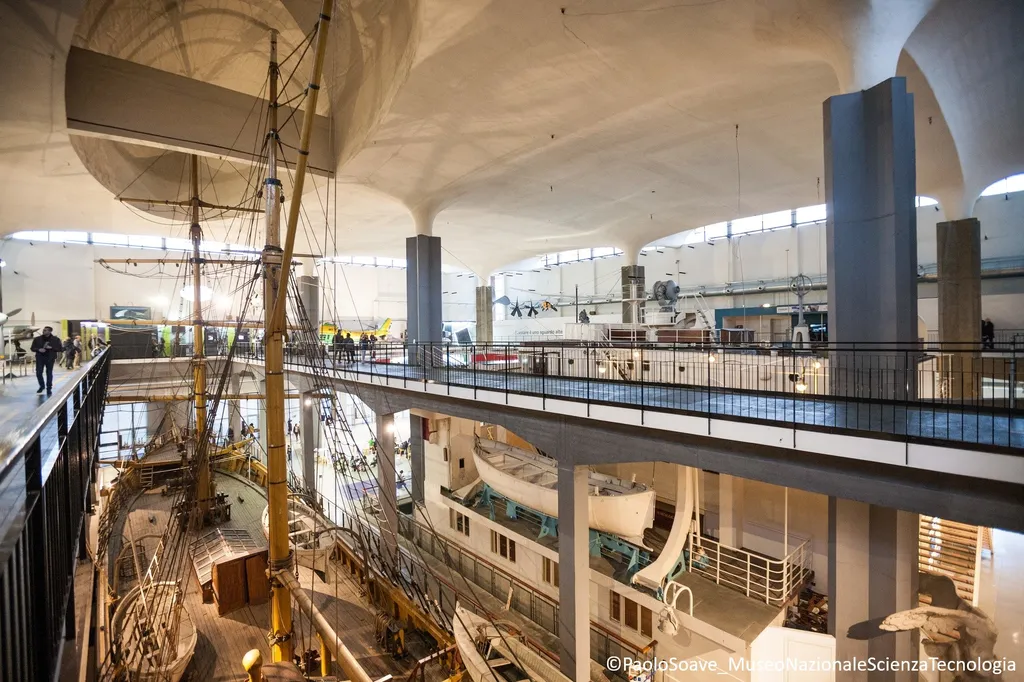 また、蒸気機関車、AC72型双胴船「ルナ・ロッサ」、二本マストの帆船「エベ号」、大西洋横断船「コンテ・ビアンカマーノ号」のデッキ、潜水艦「トーティ号」、宇宙発射機「ヴェガ号」、イタリアが保有する月の岩石の破片など、驚くべき展示物も見学できます。