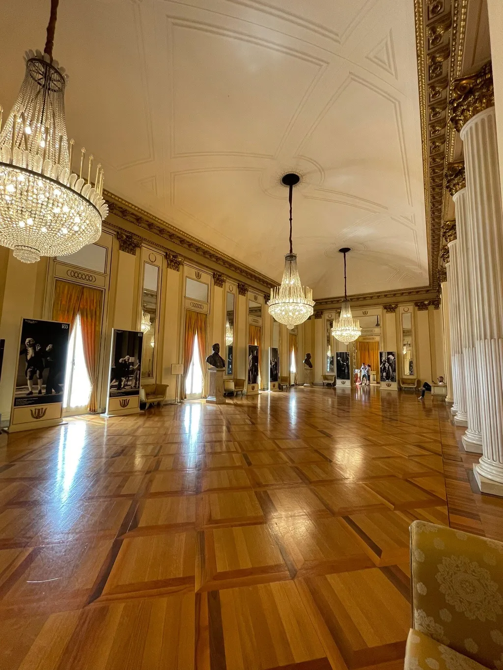 第二次世界大戦中には空襲で劇場が破壊されましたが、戦後イタリア政府が多額の資金を投入して再建。当時のトップレベルの水準で復元され、現在の壮麗な姿となりました。外観は控えめですが、内部は豪華絢爛。6層の金色のアーチ、枝の形をした照明、赤いシルクで仕切られた個室ボックスなど、まさに夢のような空間です。